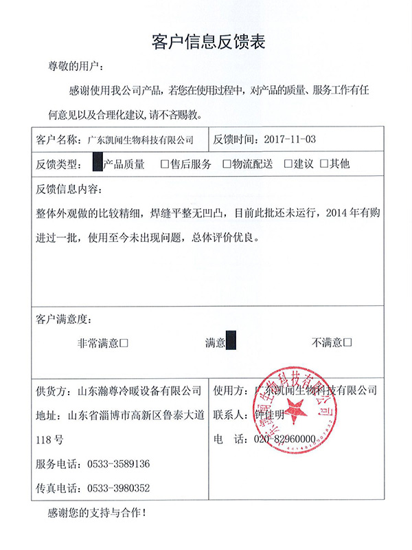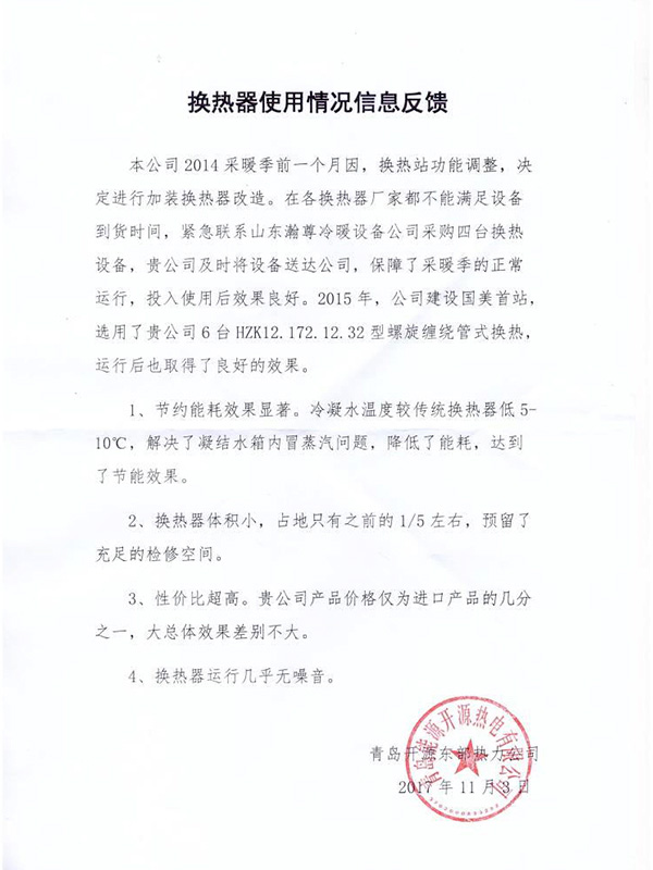 山東瀚尊冷暖設備有限公司坐落在美麗的齊國古都---淄博,是一家以換熱(冷凝)產品研發、生產、營銷為一體的企業;自2008年以來,通過與中外知名熱力設備制造商合作以及自主探索和創新,于2010年成功研制生產出了公司第一臺螺旋纏繞管式換熱器;同時,公司依托自身強大的技術力量和研發能力,于2016年成功研制生產無死角無菌級雙管板式換熱器,近年來,公司努力走在中國換熱器行業的前列,致力于創造民族品牌,為用戶提供專業技術支持與服務......